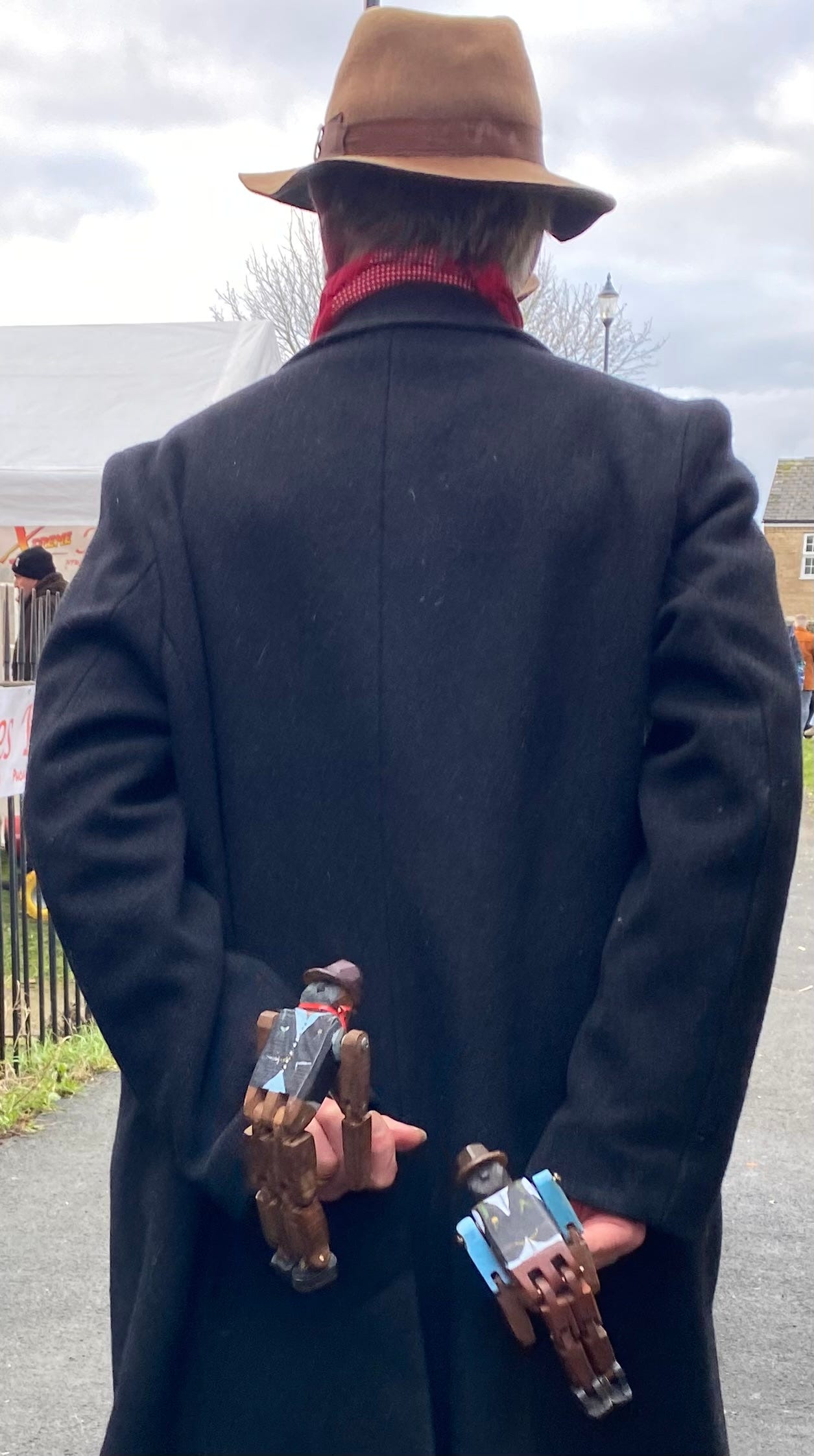 PS: I shall leave the final goodbye to the Old Glory Mollyman who we found ourselves following in Whittlesea, his clattering jig dolls entering the spirit of the dance as he prepared to perform outside the next Straw Bear venue.